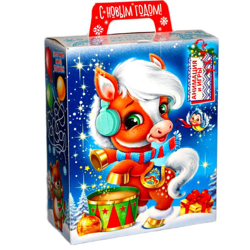 Сладкий новогодний подарок в картонной упаковке весом 750 грамм