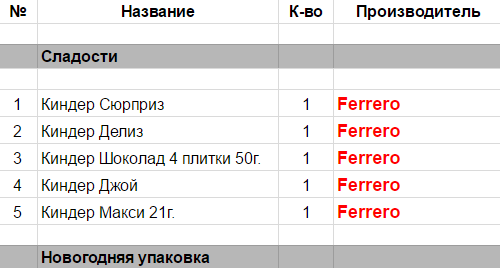 Опубликовано в Составы подарков