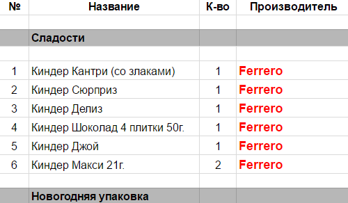 Опубликовано в Составы подарков