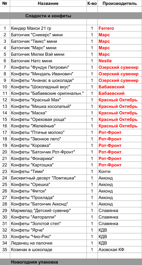 Конфеты "Красный Мак" (1 шт), Конфеты "Мишка косолапый" (1 шт), Конфеты "Маска" (1 шт), Конфеты "Ореховая роща" (1 шт), Конфеты "Желейные" (1 шт)